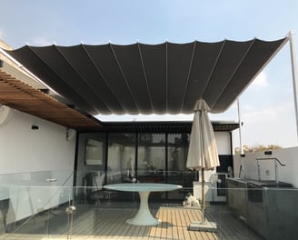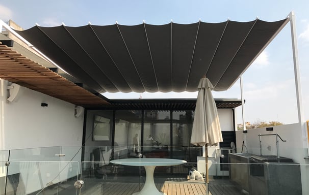 Toldo retráctil muy versátil para cubrir espacios que requieren protección solar y contra otros factores meteorológicos como la lluvia