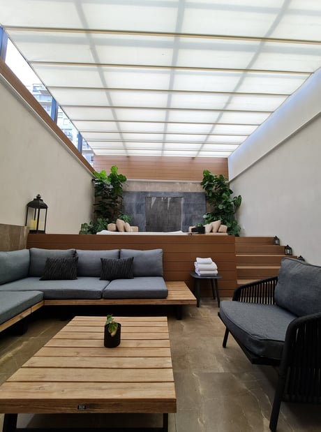 Dependiendo del tipo de estructura portante para el sistema, se podrán utilizar diferentes cerramientos, como toldos de caída vertical, screens y cerramientos acristalados. Estas soluciones permiten proteger y cubrir el espacio según sea necesario, ya sea para resguardarse del sol, del viento o de la lluvia