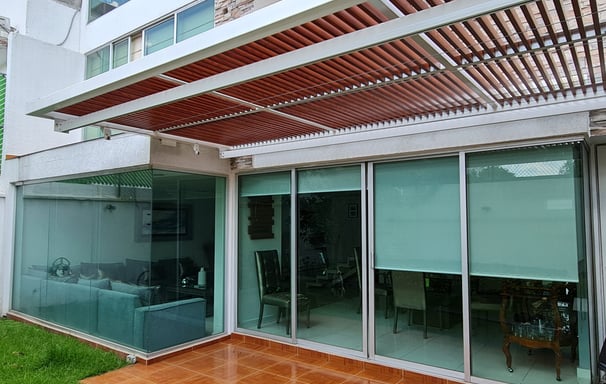 Diseño moderno adaptable a diversos entornos arquitectónicos, ideal para espacios en terrazas donde se requiere de una protección contra factores meteorológicos como la lluvia sin perder iluminación natural