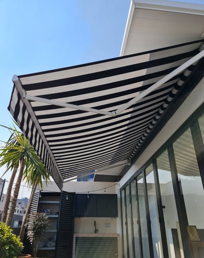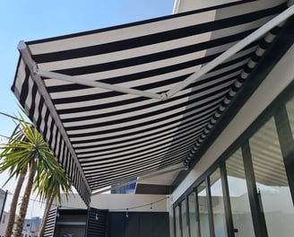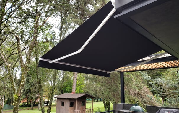 Este toldo puede contar con un cofre (opcional) para proteger el textil de la polución y diversas condiciones climáticas, aumentando la vida útil y apariencia de la cubierta